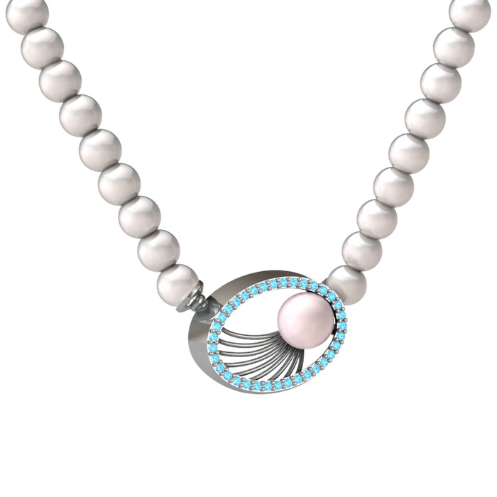 Pembe inci, inci ve akuamarin 14 ayar beyaz altın kolye