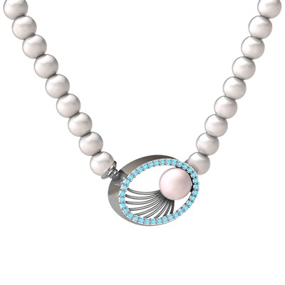 Pembe inci, inci ve akuamarin 925 ayar gümüş kolye