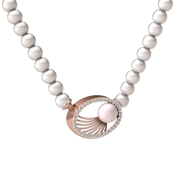 Pembe inci, inci ve beyaz zirkon 8 ayar rose altın kolye