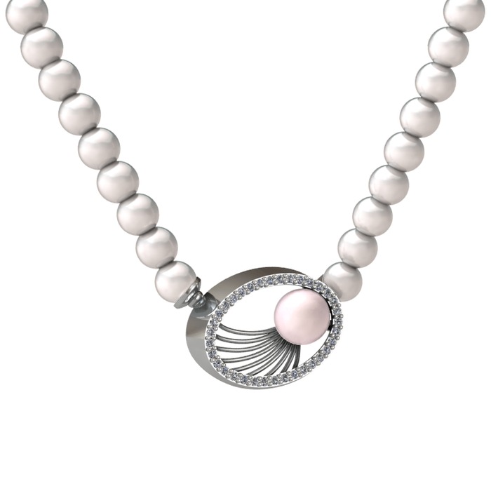 Pembe inci, inci ve pırlanta 925 ayar gümüş kolye (0.396 karat)