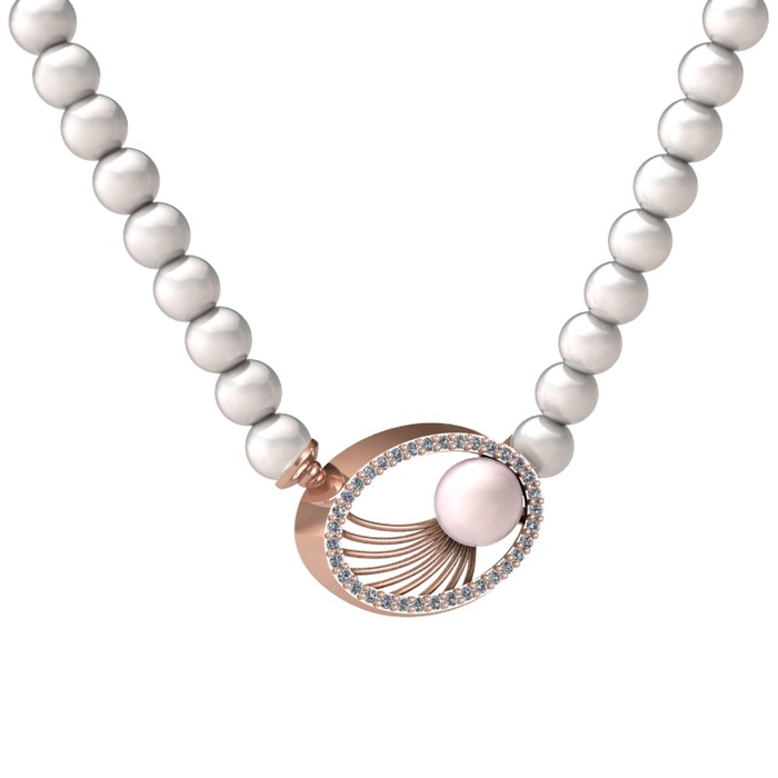 Pembe inci, inci ve pırlanta 925 ayar rose altın kaplama gümüş kolye (0.396 karat)