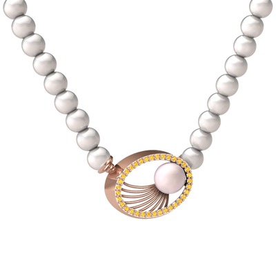 Pembe inci, inci ve sitrin 925 ayar rose altın kaplama gümüş kolye