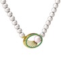 Pembe inci, inci ve yeşil kuvars 14 ayar altın kolye