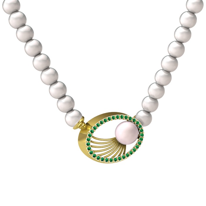 Pembe inci, inci ve yeşil kuvars 18 ayar altın kolye