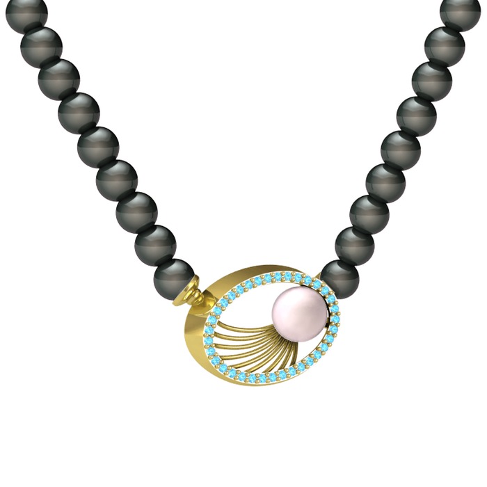 Pembe inci, siyah inci ve akuamarin 14 ayar altın kolye