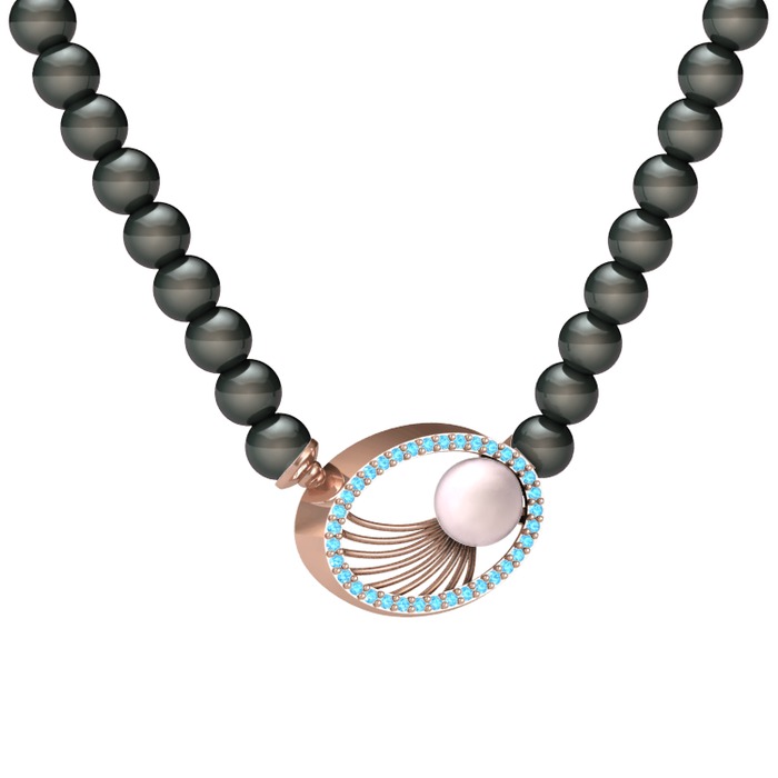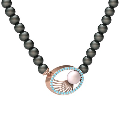 Pembe inci, siyah inci ve akuamarin 925 ayar rose altın kaplama gümüş kolye