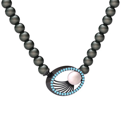 Pembe inci, siyah inci ve akuamarin 925 ayar siyah rodyum kaplama gümüş kolye
