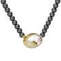 Pembe inci, siyah inci ve beyaz zirkon 8 ayar altın kolye