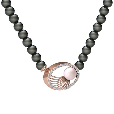 Pembe inci, siyah inci ve beyaz zirkon 925 ayar rose altın kaplama gümüş kolye