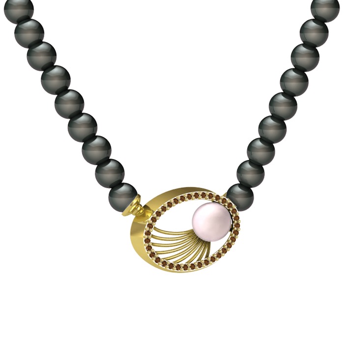 Pembe inci, siyah inci ve dumanlı kuvars 14 ayar altın kolye