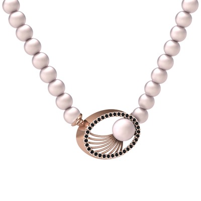 Pembe inci ve siyah zirkon 8 ayar rose altın kolye