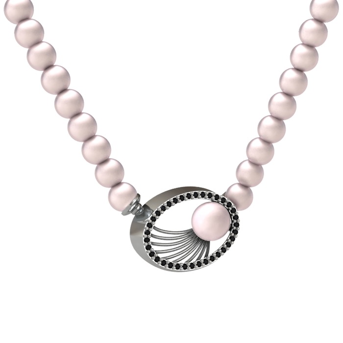 Pembe inci ve siyah zirkon 925 ayar gümüş kolye