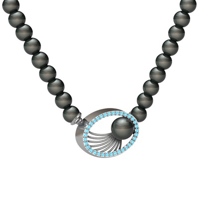 Siyah inci ve akuamarin 8 ayar beyaz altın kolye