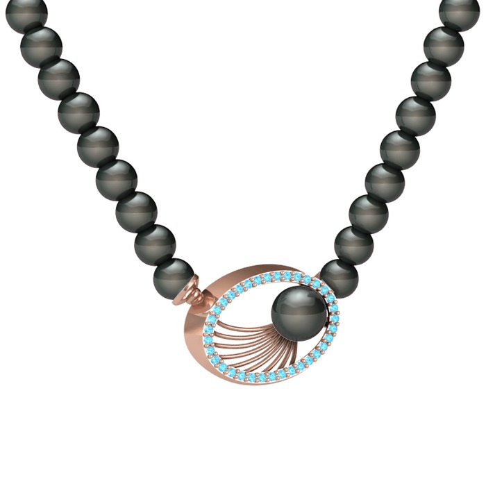 Siyah inci ve akuamarin 8 ayar rose altın kolye