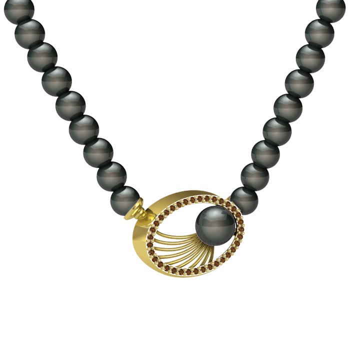 Siyah inci ve dumanlı kuvars 925 ayar altın kaplama gümüş kolye