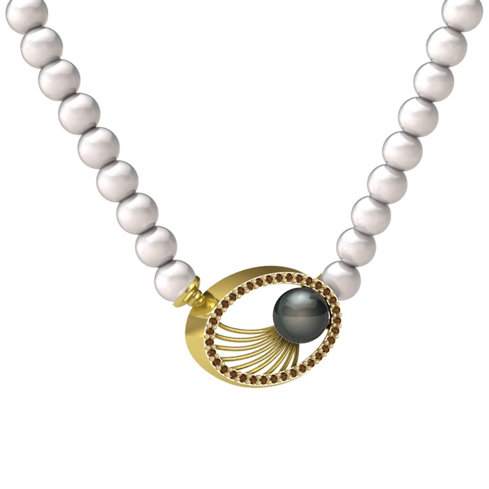 Siyah inci, inci ve dumanlı kuvars 18 ayar altın kolye