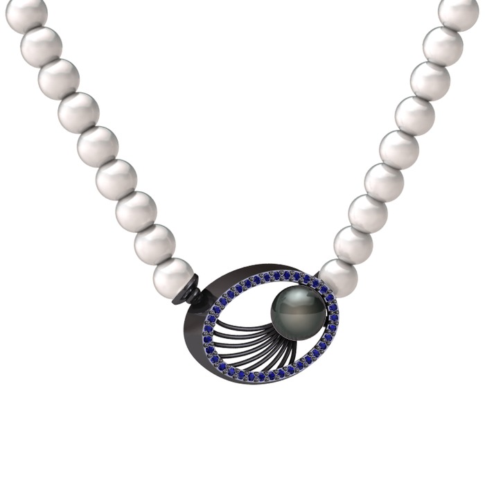 Siyah inci, inci ve lab safir 925 ayar siyah rodyum kaplama gümüş kolye