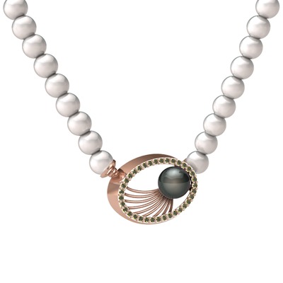 Siyah inci, inci ve peridot 8 ayar rose altın kolye
