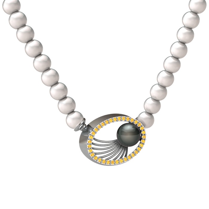 Siyah inci, inci ve sitrin 14 ayar beyaz altın kolye