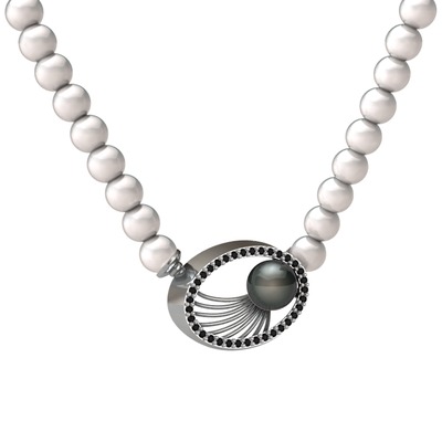 Siyah inci, inci ve siyah zirkon 925 ayar gümüş kolye