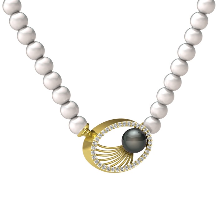 Siyah inci, inci ve swarovski 925 ayar altın kaplama gümüş kolye