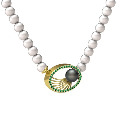 Siyah inci, inci ve yeşil kuvars 925 ayar altın kaplama gümüş kolye