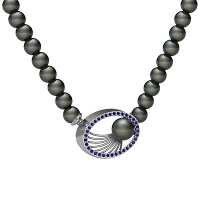 Siyah inci ve lab safir 925 ayar gümüş kolye