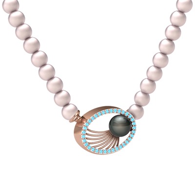 Siyah inci, pembe inci ve akuamarin 18 ayar rose altın kolye