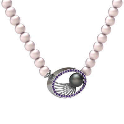 Siyah inci, pembe inci ve ametist 18 ayar beyaz altın kolye