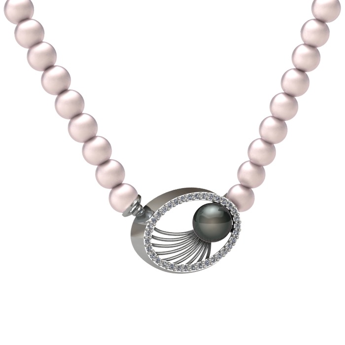 Siyah inci, pembe inci ve pırlanta 18 ayar beyaz altın kolye (0.396 karat)