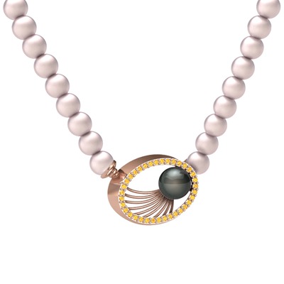 Siyah inci, pembe inci ve sitrin 925 ayar rose altın kaplama gümüş kolye