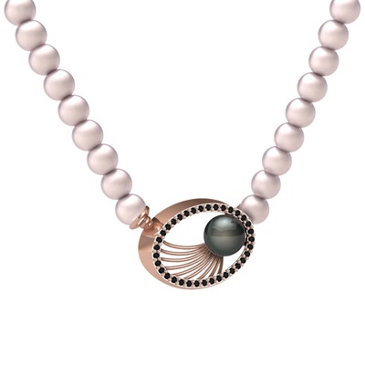 Siyah inci, pembe inci ve siyah zirkon 14 ayar rose altın kolye