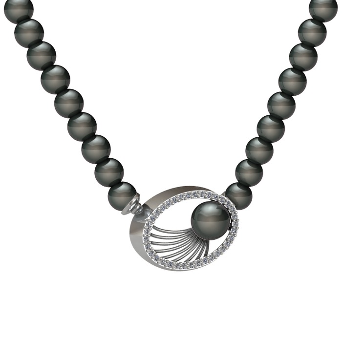 Siyah inci ve pırlanta 925 ayar gümüş kolye (0.396 karat)