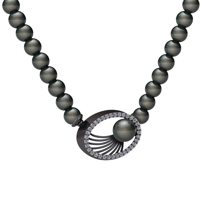 Siyah inci ve pırlanta 925 ayar siyah rodyum kaplama gümüş kolye (0.396 karat)