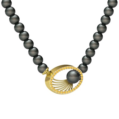 Siyah inci ve sitrin 925 ayar altın kaplama gümüş kolye