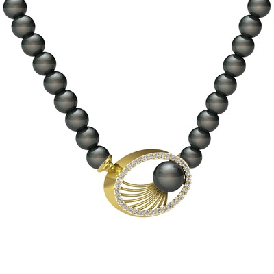 Siyah inci ve swarovski 8 ayar altın kolye