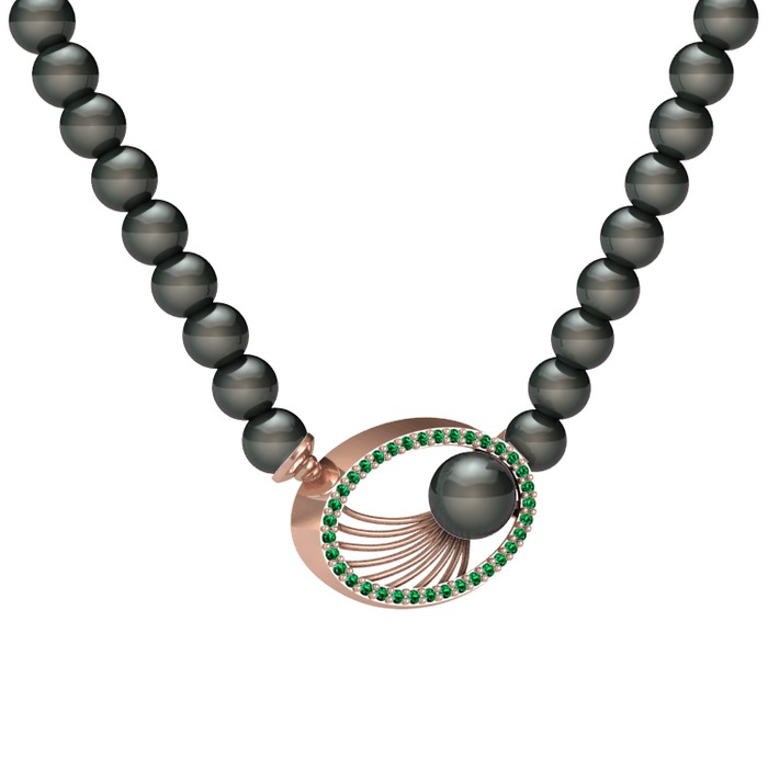 Siyah inci ve yeşil kuvars 925 ayar rose altın kaplama gümüş kolye