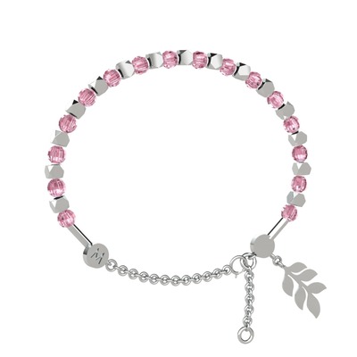 Pembe kuvars 14 ayar beyaz altın bilezik