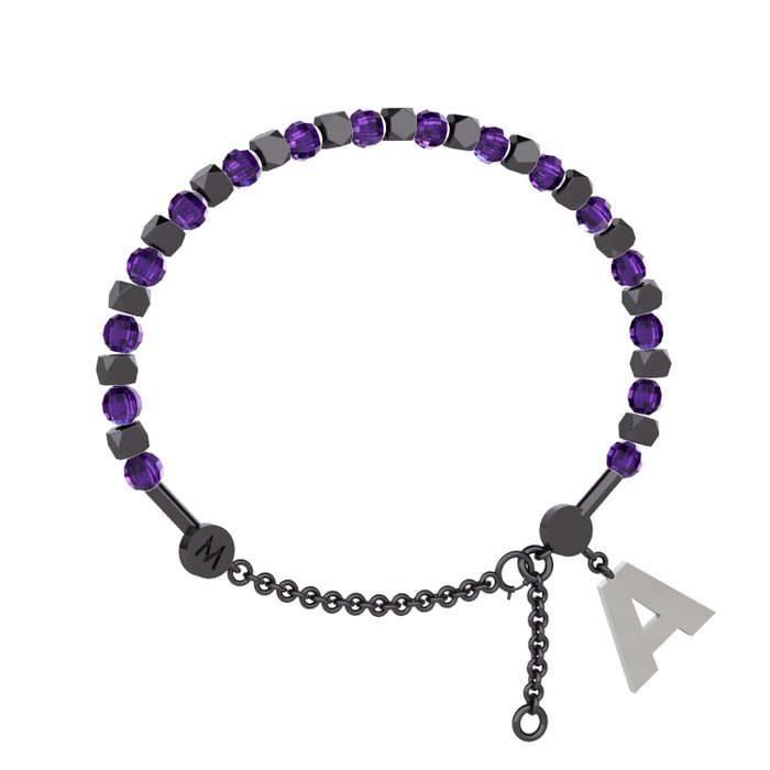 Ametist 925 ayar siyah rodyum kaplama gümüş bilezik