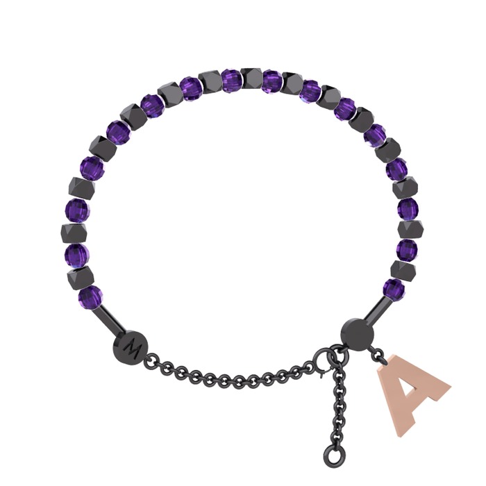 Ametist 925 ayar siyah rodyum kaplama gümüş bilezik