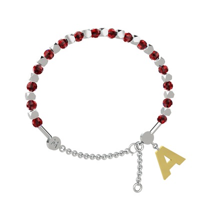 Mitra Harf Bilezik - Garnet 14 ayar beyaz altın bilezik