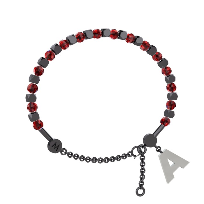 Mitra Harf Bilezik - Garnet 925 ayar siyah rodyum kaplama gümüş bilezik