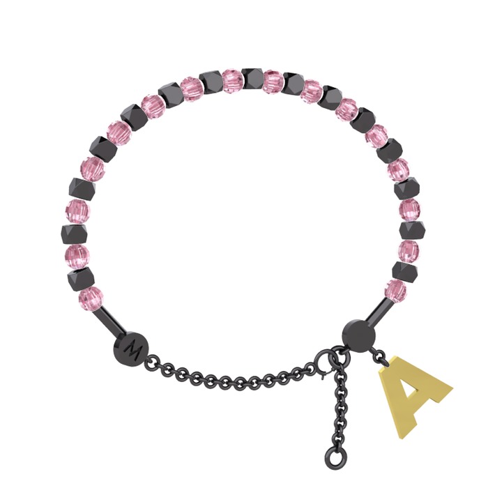 Pembe kuvars 925 ayar siyah rodyum kaplama gümüş bilezik