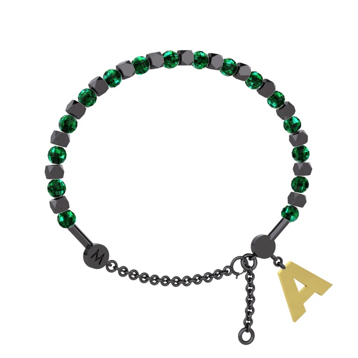 Yeşil kuvars 925 ayar siyah rodyum kaplama gümüş bilezik
