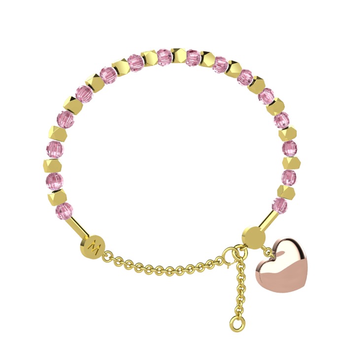 Mitra Kalp Bilezik - Pembe kuvars 925 ayar altın kaplama gümüş bilezik