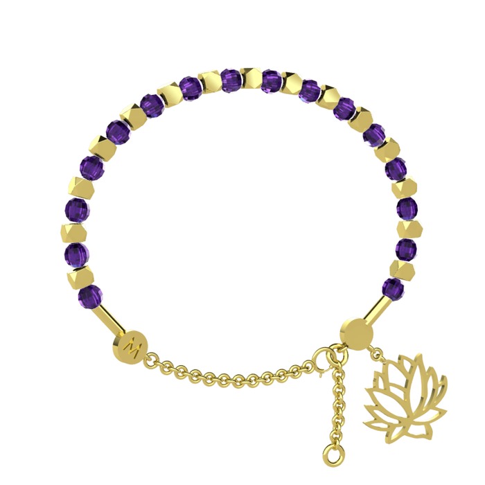 Mitra Lotus Bilezik - Ametist 925 ayar altın kaplama gümüş bilezik