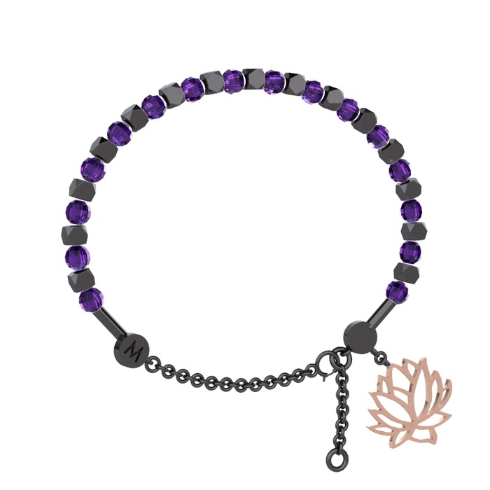 Mitra Lotus Bilezik - Ametist 925 ayar siyah rodyum kaplama gümüş bilezik