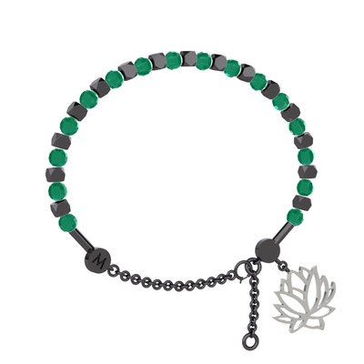 Mitra Lotus Bilezik - Kök zümrüt 925 ayar siyah rodyum kaplama gümüş bilezik