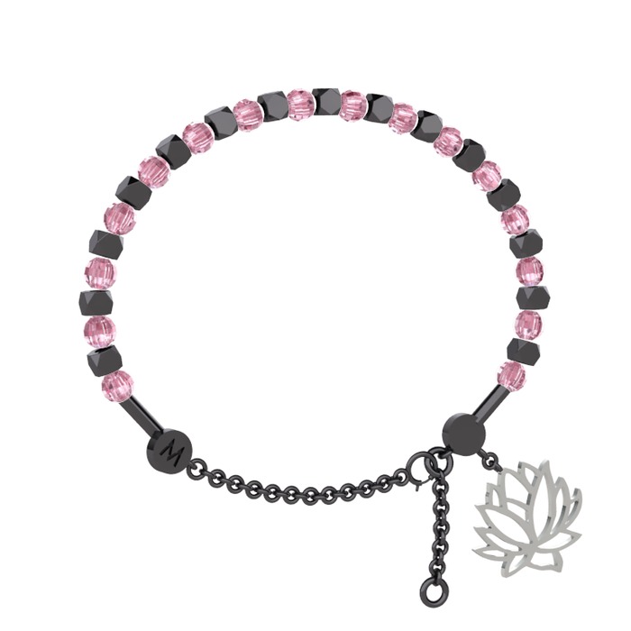 Pembe kuvars 925 ayar siyah rodyum kaplama gümüş bilezik