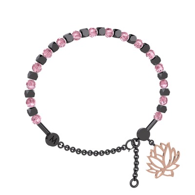 Mitra Lotus Bilezik - Pembe kuvars 925 ayar siyah rodyum kaplama gümüş bilezik